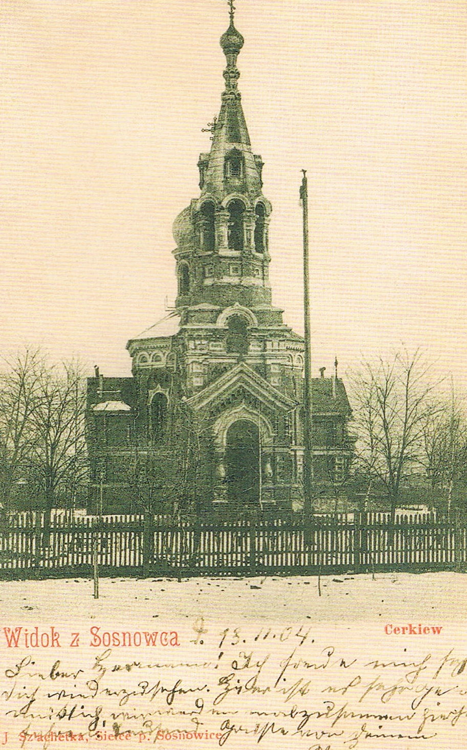 Pisząc o prawosławiu na terenie Sosnowca trzeba mieć na uwadze pierwszą świątynię w Granicy (kiedyś osobna osada, obecnie dzielnica Sosnowca – Maczki).  Cerkiew wybudowano z ofiar wiernych na przedłużeniu budynku komory celnej, położenie kamienia węgielnego nastąpiło we wrześniu 1876 r., a wyświęcenia dokonano 7 października 1884 r. Świątynia pod wezwaniem św. Aleksandra Newskiego mogła pomieścić 250 osób. Była jednokopułowa, nad przedsionkiem znajdowała się dzwonnica z 6 dzwonami i  zegar jako wotum po wypadku na stacji Borki w dniu 07.10.1888 r. Ikonostas wykonano w pracowni Leontiewa, ikony napisał akademik Wasiljew. Koszt budowy cerkwi i domu parafialnego wyniósł 60 tys. rubli. Cerkiew w Granicy była prawie identyczna jak    w innych miastach Królestwa – Aleksandrowie Kujawskim, Mławie, Grajewie. Z przekazów mieszkańców wiadomo, że kuliste zwieńczenie hełmu miało średnicę 1m. i było złocone.  Do 1910 r. cerkiew w Granicy stanowiła odrębną parafię. Później natomiast włączono ją do parafii św. Mikołaja w Sosnowcu.